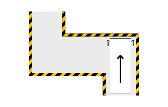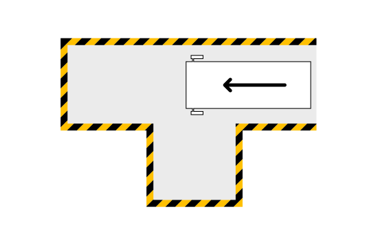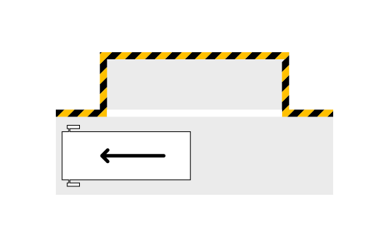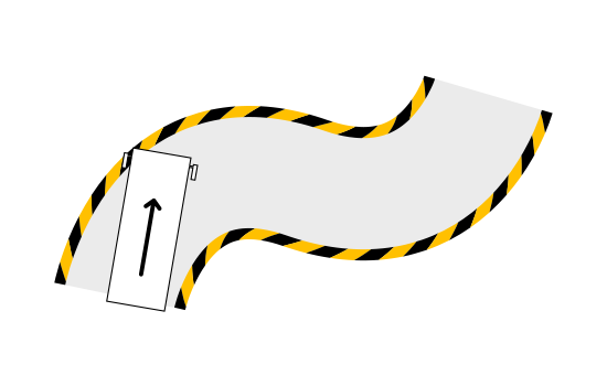 1. 우측 검지선과 20cm 유지하며 진행, 앞바퀴가 A선과 일치할때 정지