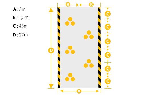 - 입체 장애물은 중심선상에 5개소 설치
